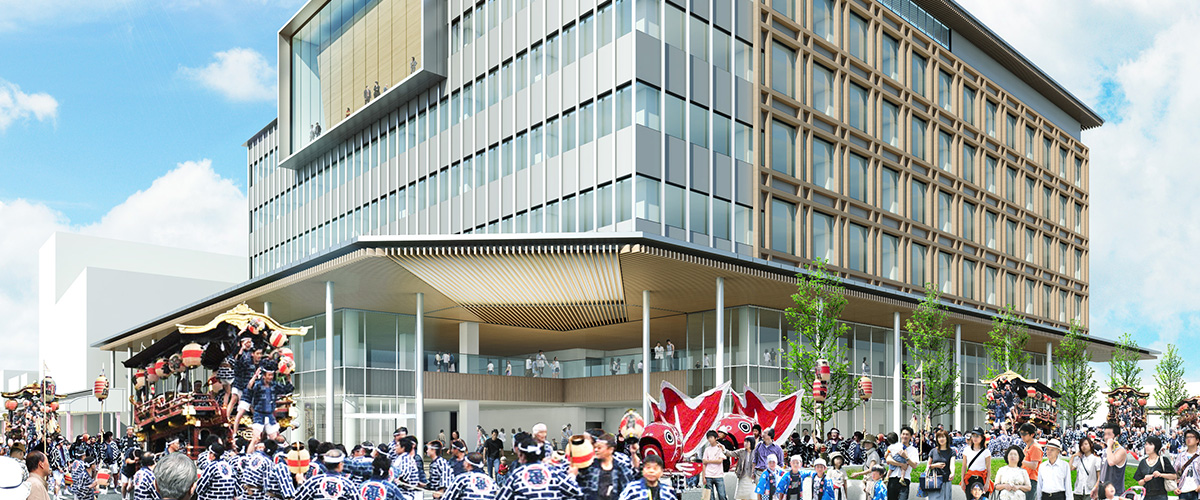 広島カープ旧球場の建替え。駅に近いアクセスの良さ、利便性を表現。