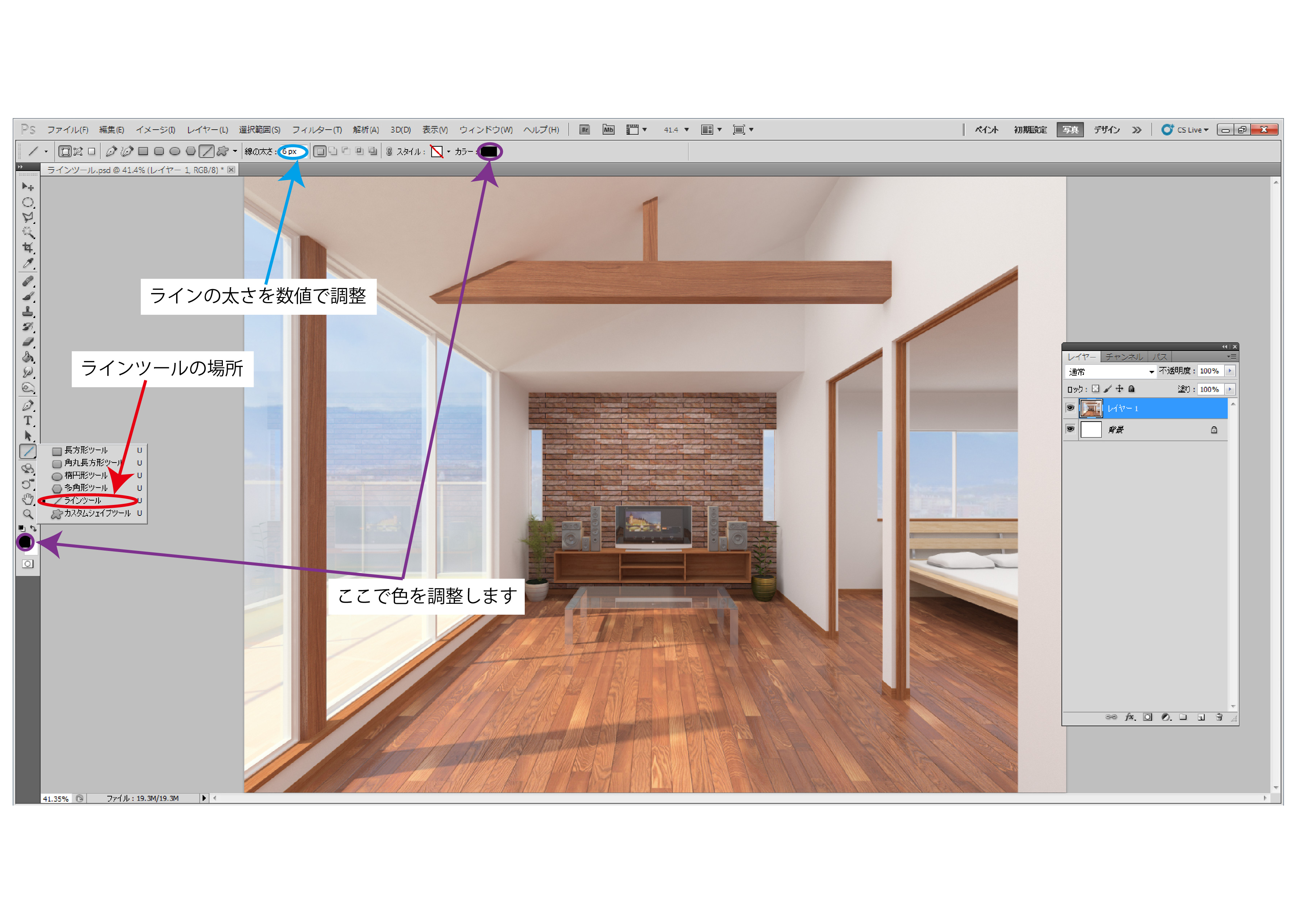 - [ブログ更新] 【photoshop初心者向け】ラインツールを使った簡易編集