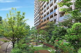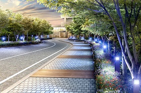 弊社では2Dの樹木をレタッチ・エフェクト時に画像編集するのではなく、3Dの樹木をレンダリング時に表現する方法に切り替えています。理由としては、樹木が自然(光と影の方向に違和感なく)で、建築物と綺麗に調和し、深く、味わいのある表現ができるからです。